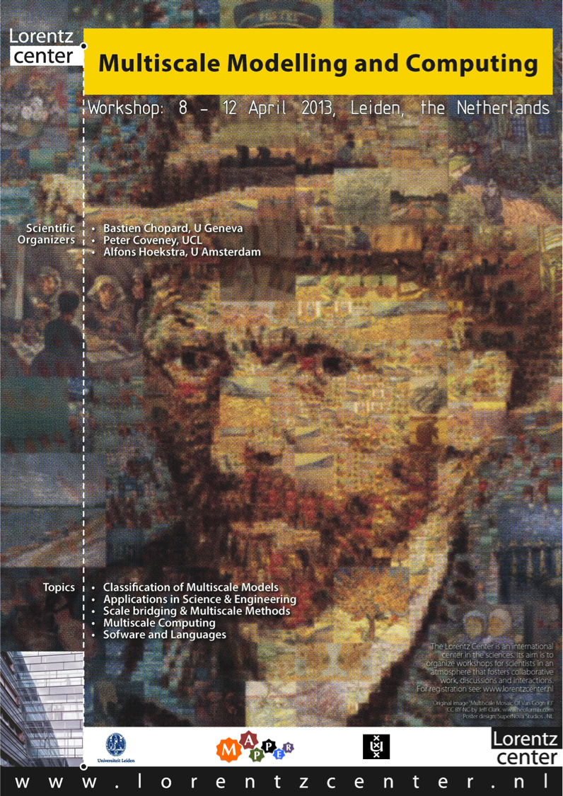 The University of Amsterdam and the MAPPER Project are running a workshop on Multiscale Modelling and Simulation at the Dutch Lorentz Center in Leiden from April 8, 2013 until April 12, 2013. The scope of the workshop, the program and other useful information is available here.
